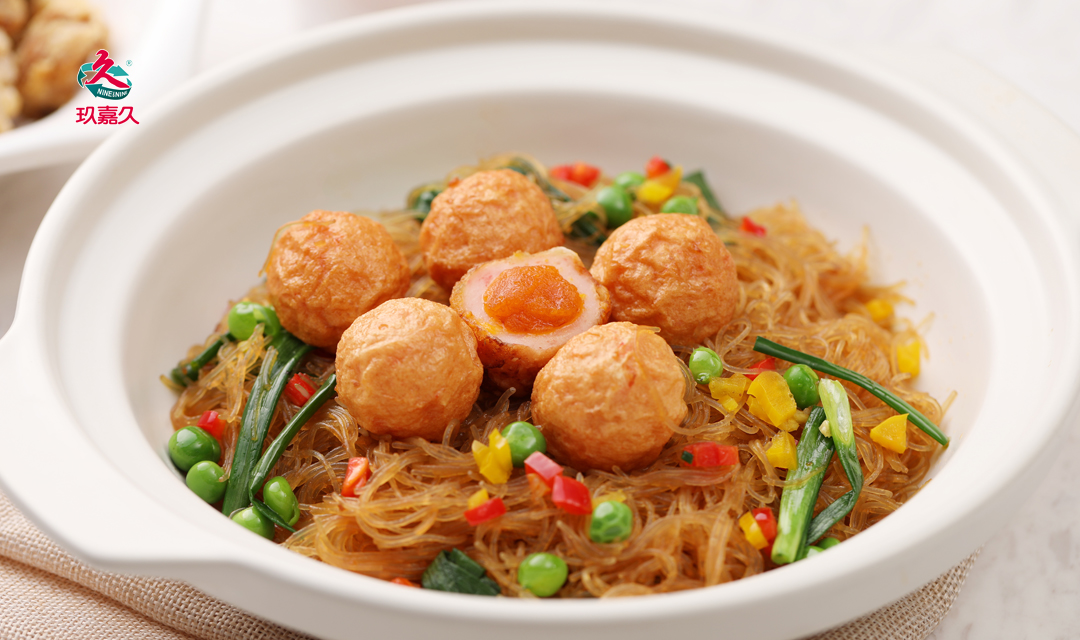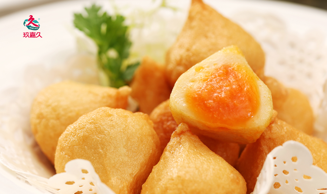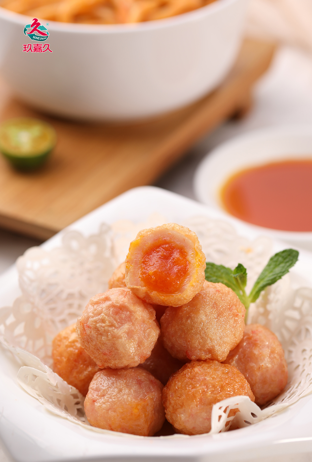 Fried, fragrant and tender sea duck egg and shrimp balls