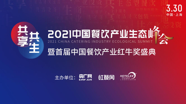 3月30日,由央廣網、紅餐網和Hotelex上海酒店及餐飲展三方強強聯手,共同主辦的“2021中國餐飲產業(yè)峰會暨首屆中國餐飲產業(yè)紅牛獎盛典”,在上海國家會展中心隆重舉行。
